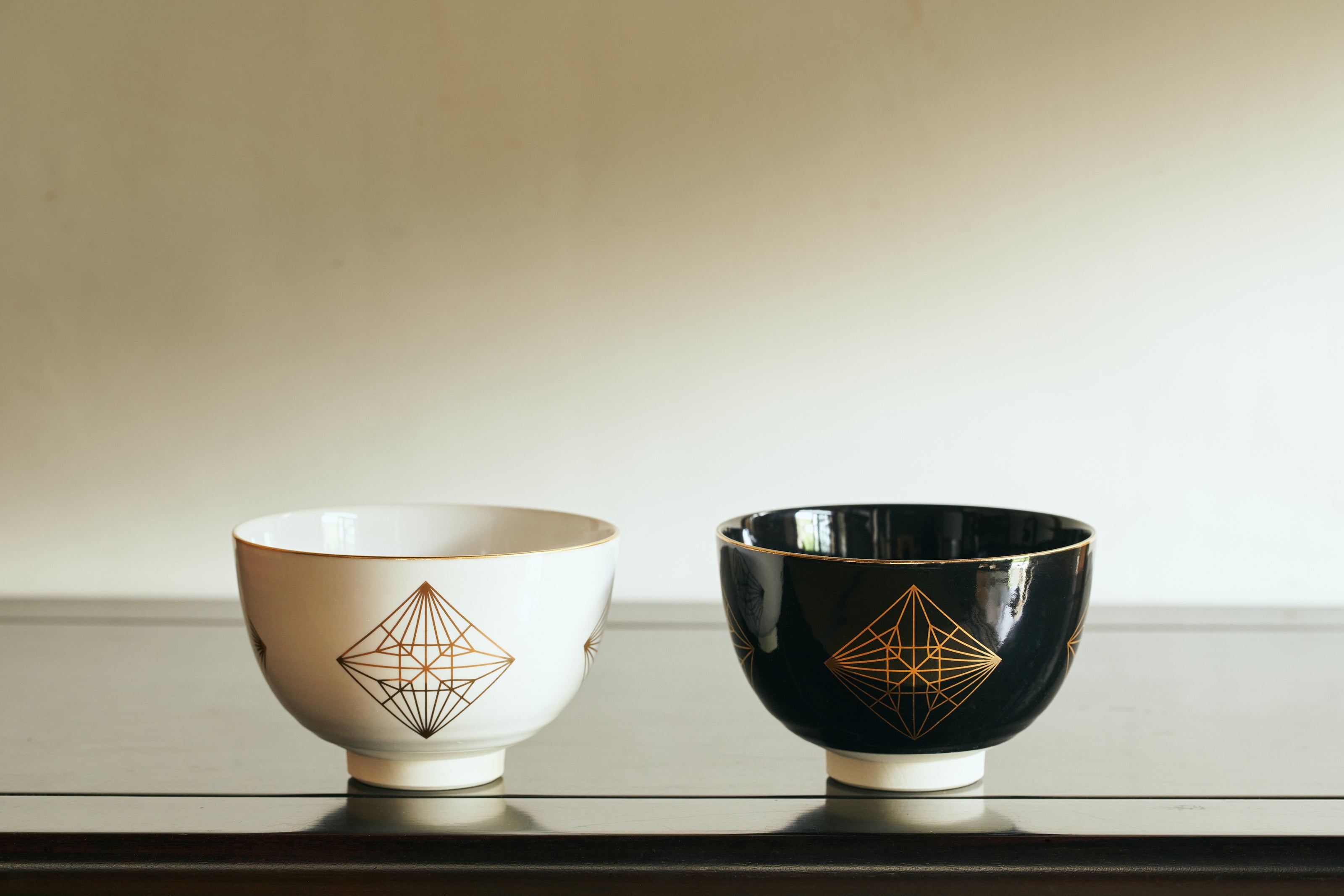 折鶴茶碗の底面には折鶴が描かれており、側面には折鶴の展開図を描いております。